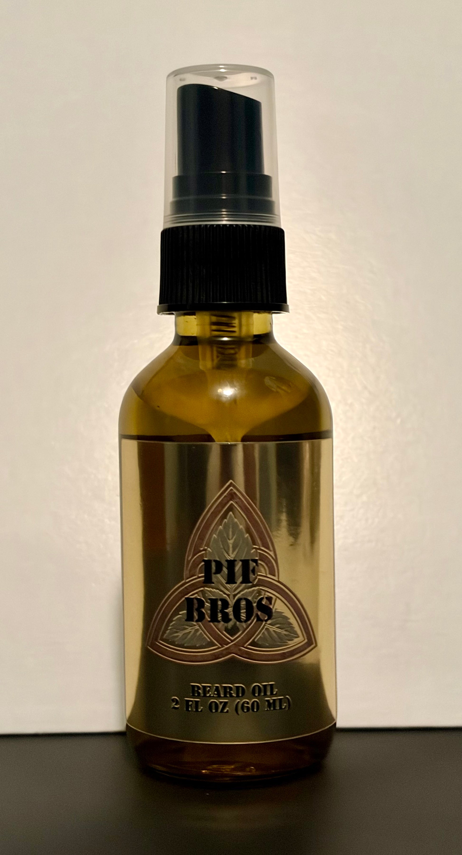2oz glass spray bottle of handcrafted beard oil, made in small batches with a rich blend of five high quality essential oils in a fractionated coconut oil base with vitamin E.
